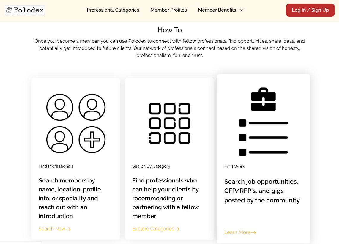 As an alternative to large and loud social media platforms, Rolodex is positioned as a distraction-free place for independent professionals to connect.